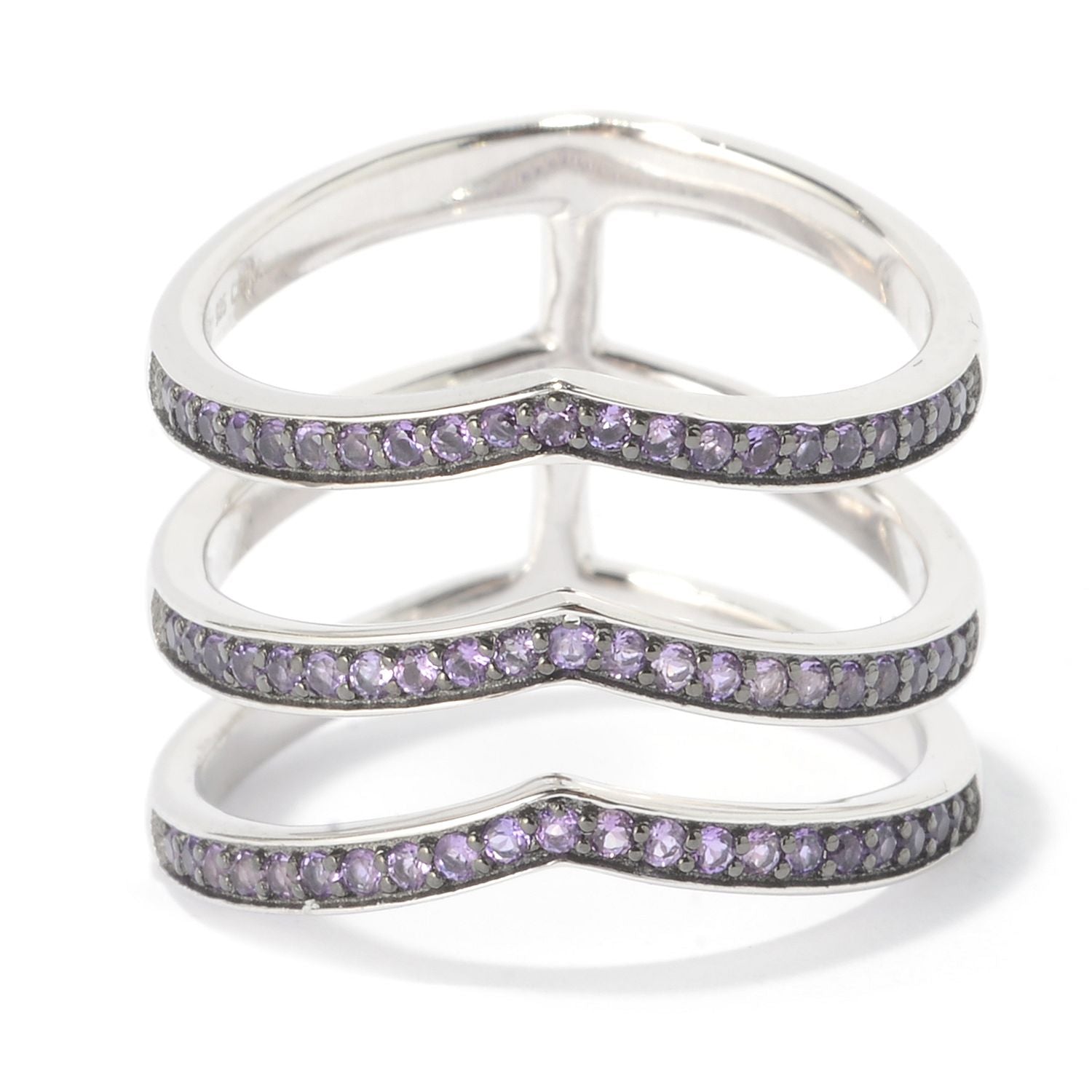 Pinctore 925 Sterling Silver Multi Gemstone Chevron Ring
