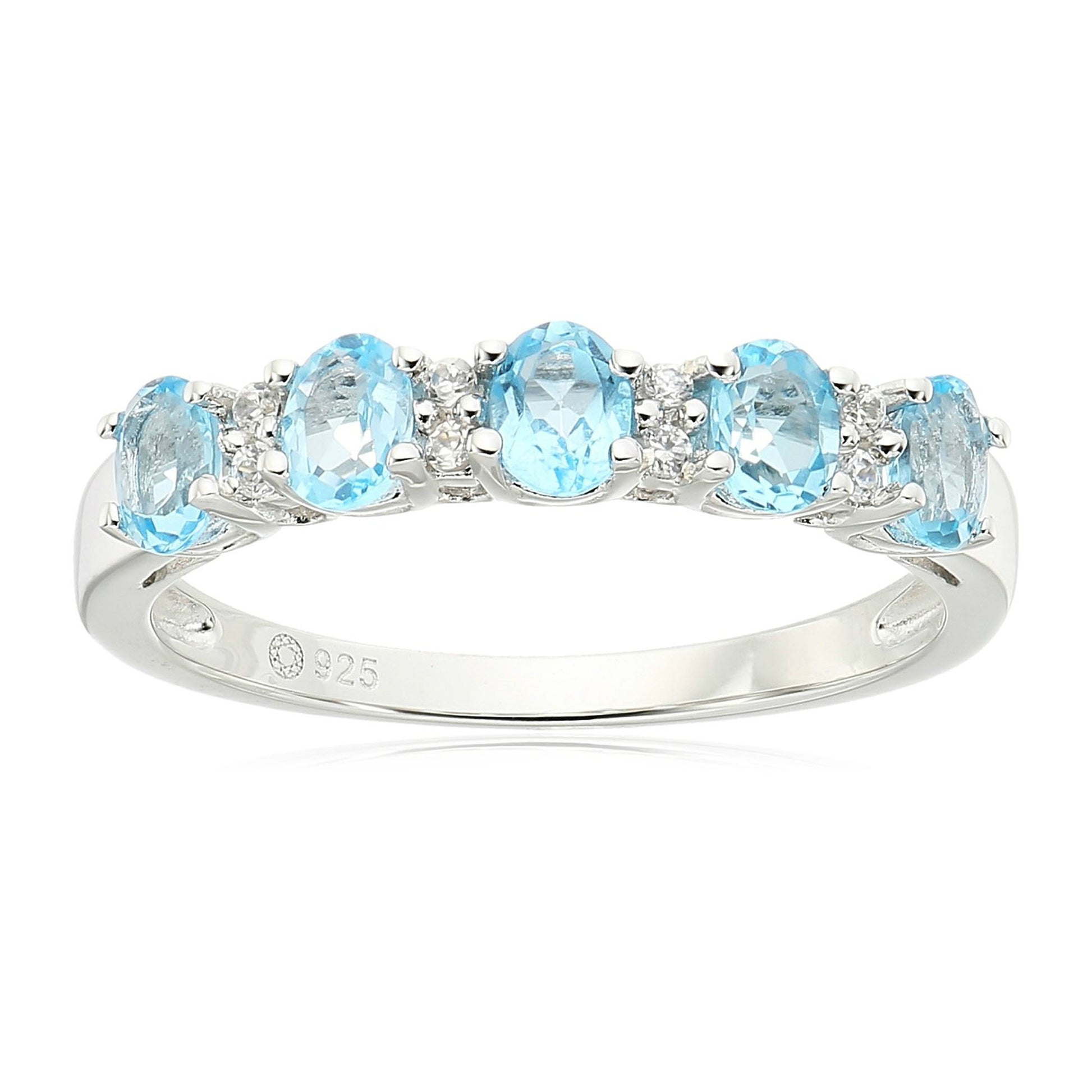 Sterling Silver Multi Gemstone and White Zirconia 5-Stone Stackable Rings
