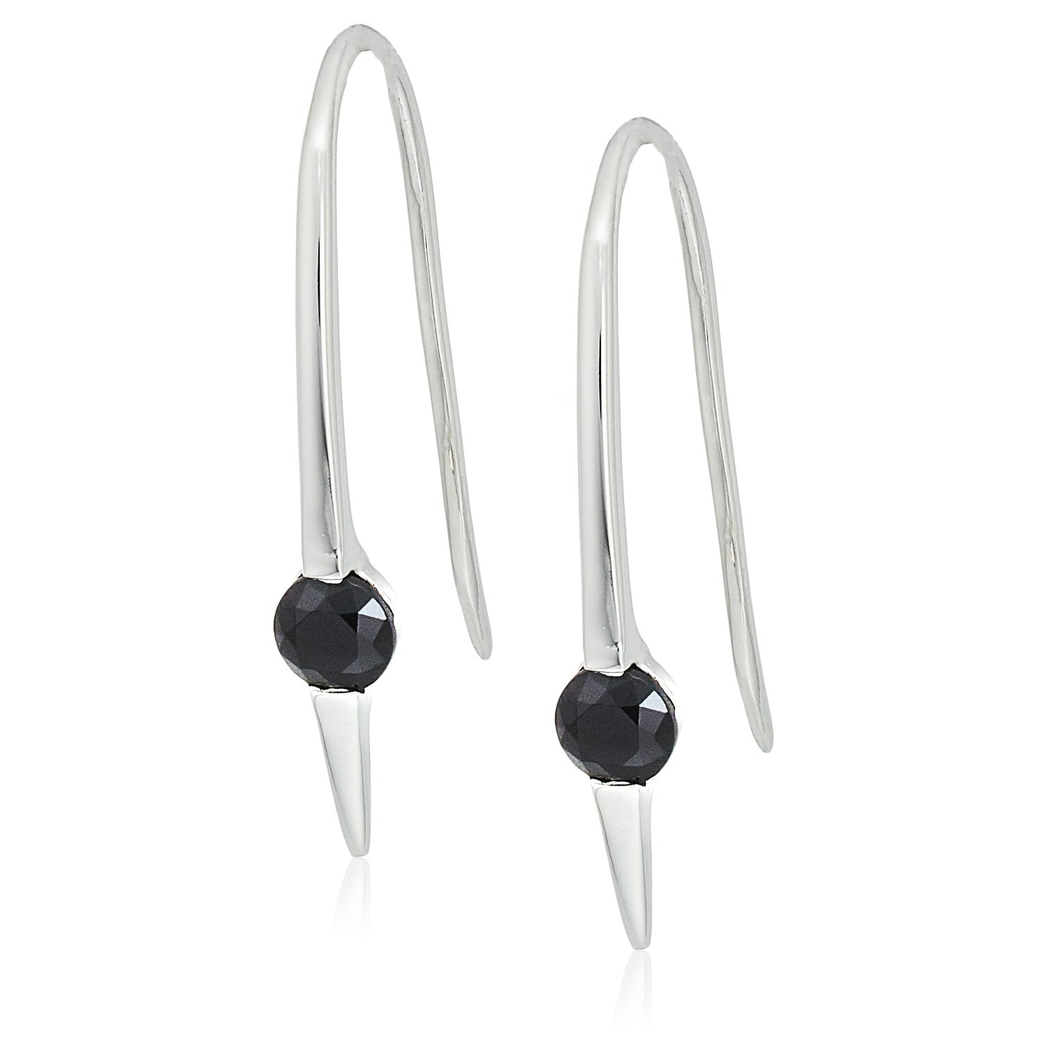 Pinctore Sterling Silver Black Spinel Wire Drop Earrings