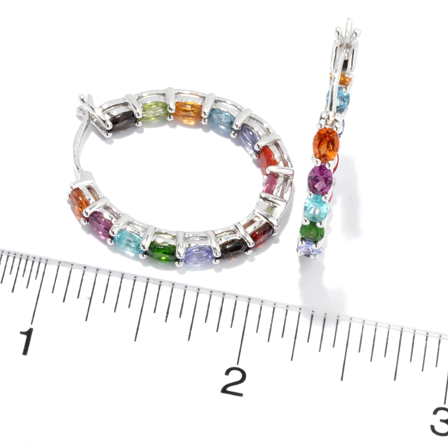 Pinctore Sterling Silver Multi-Gemstone Oval Inside-out Hoop Earrings, 1.25"L