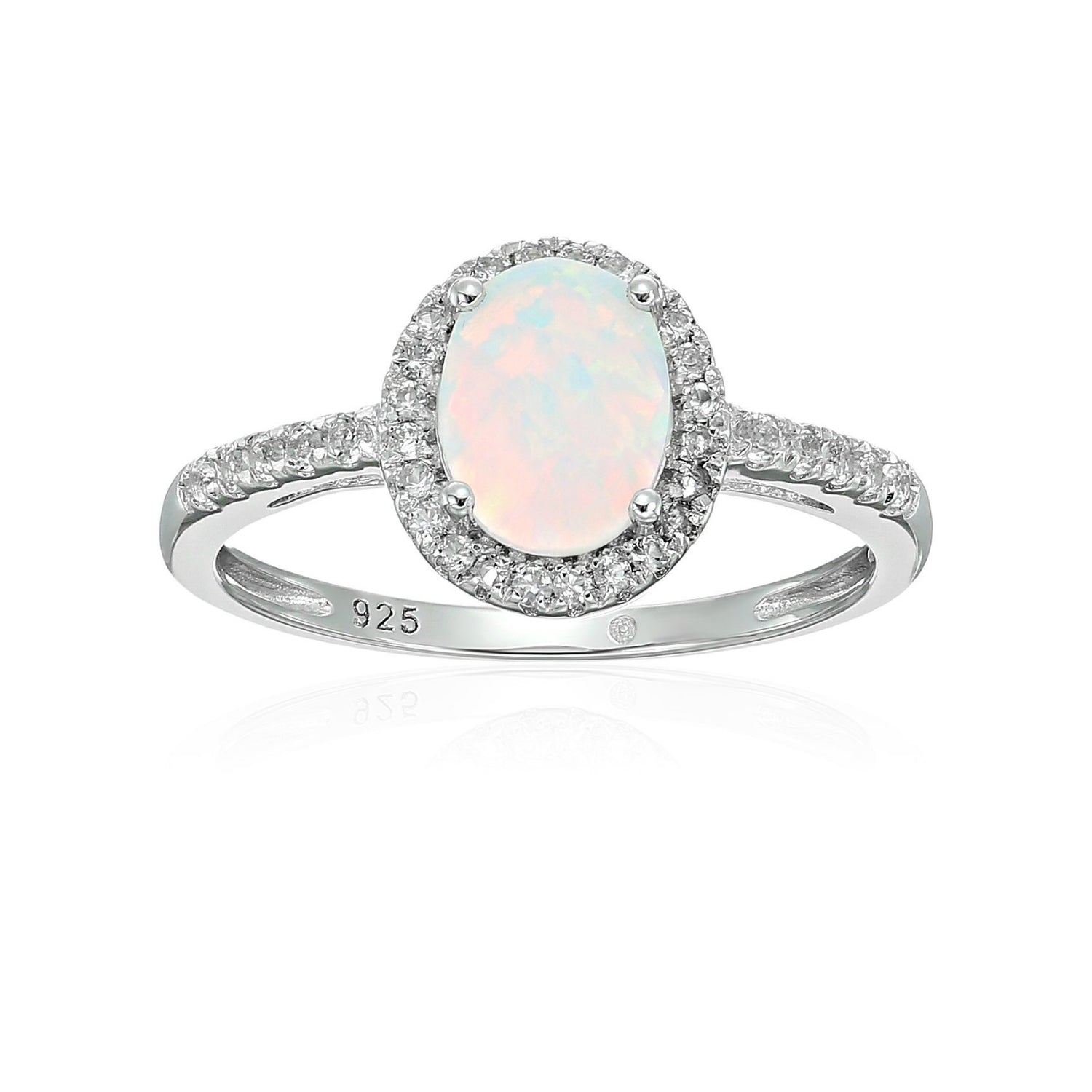 Ethiopian Opal Ring: A unique 8x6mm oval Ethiopian opal is beautifully framed by glistening white zircon, creating a stunning contrast.