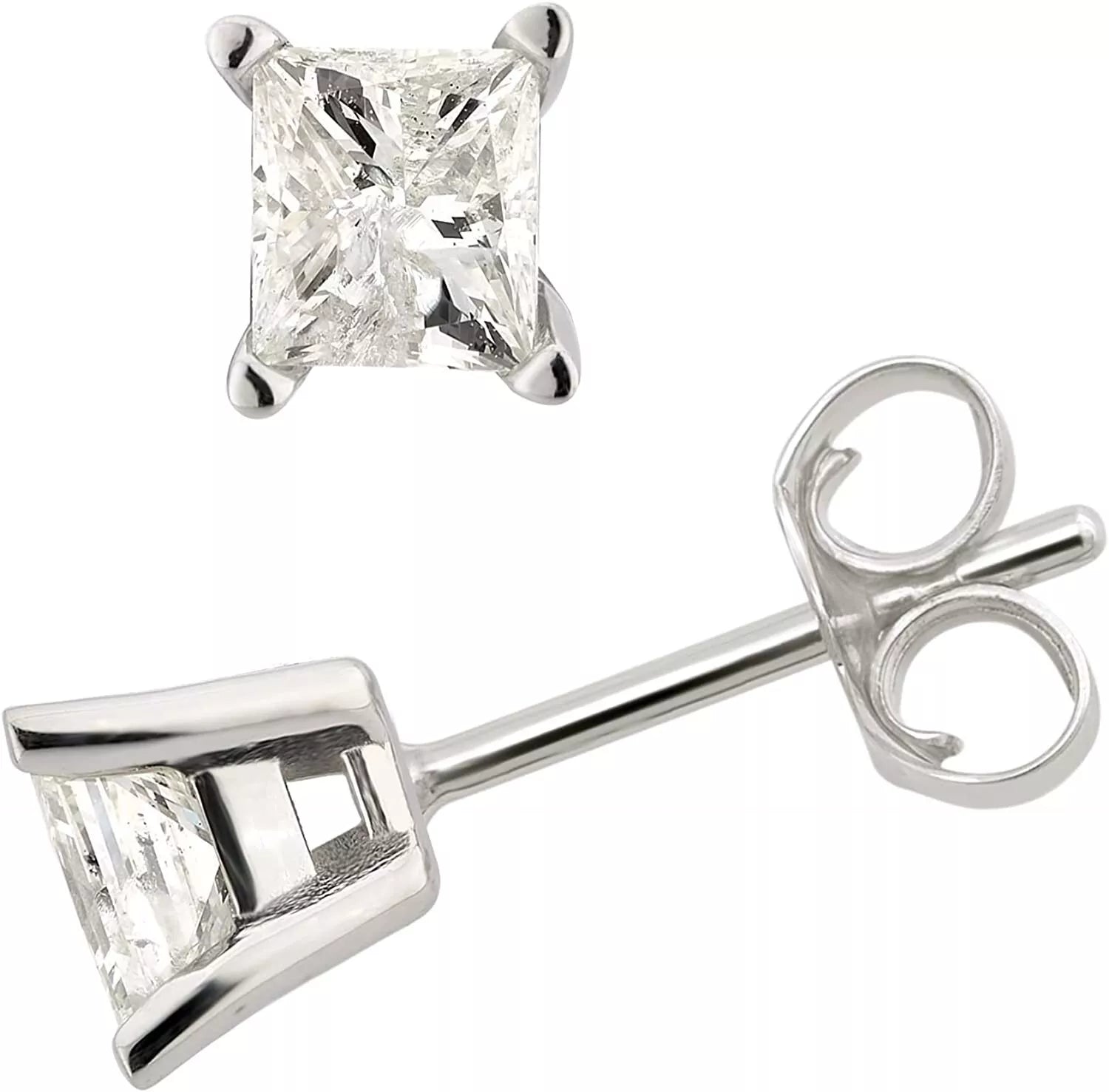 Sterling Silver Prong-Set Princess-Cut Diamond Stud Earrings – 0.25 Carat Solitaire