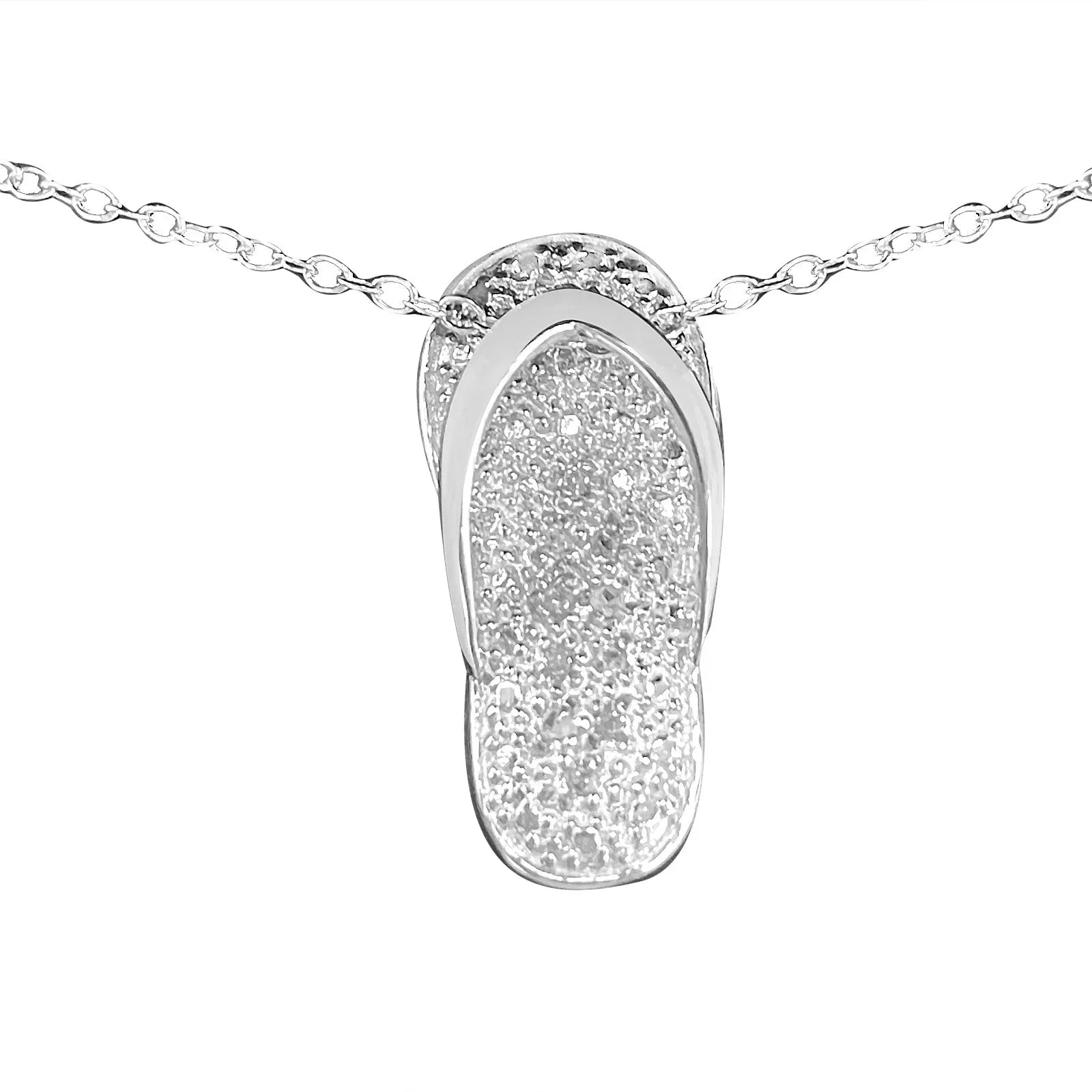 Sterling Silver Slipper Pendant Necklace with 0.10 Ct Diamond Accent – Includes Chain
