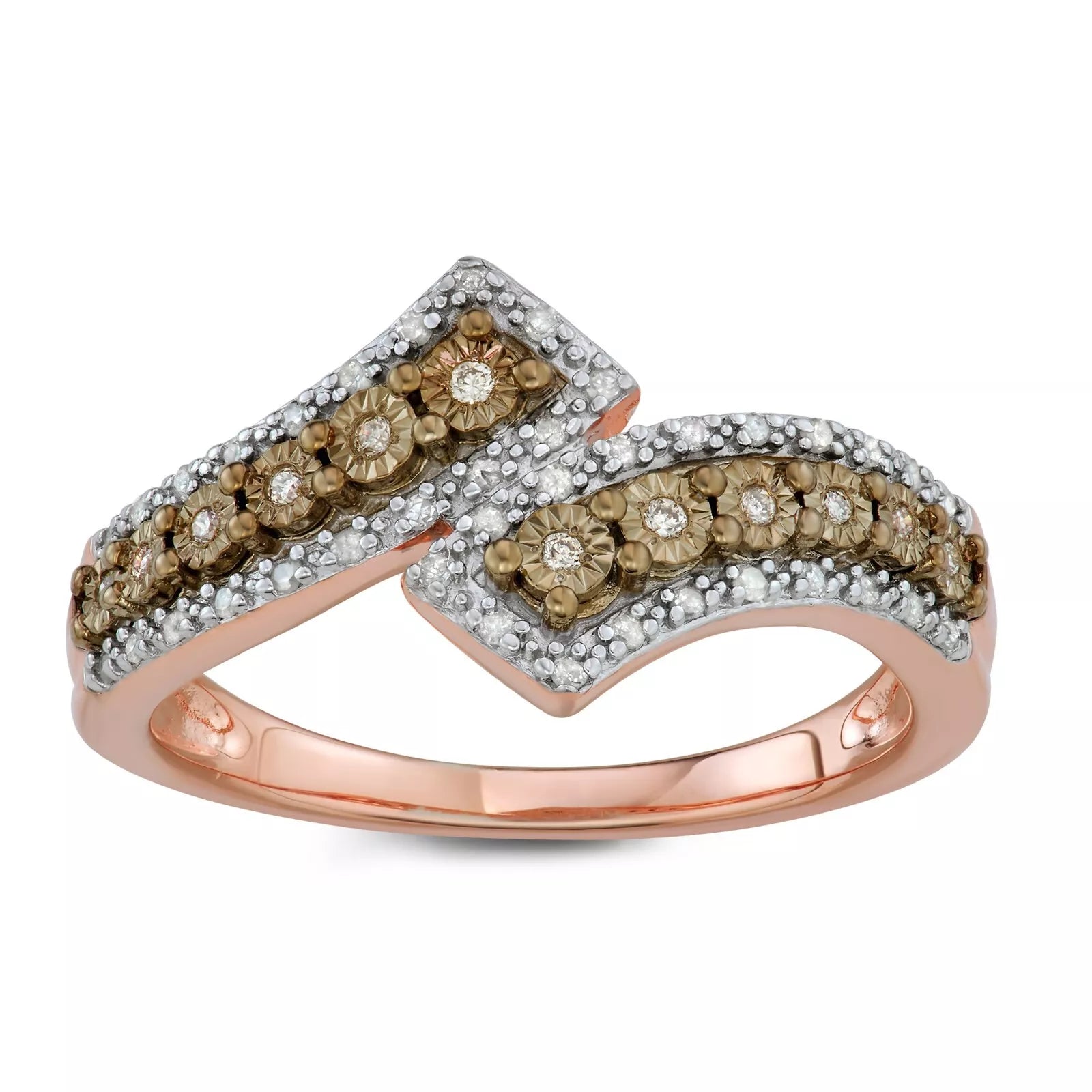 Stunning 1/5 Ct Champagne and White Diamond Bypass Ring in 925 Silver – Ideal Gift for Women"