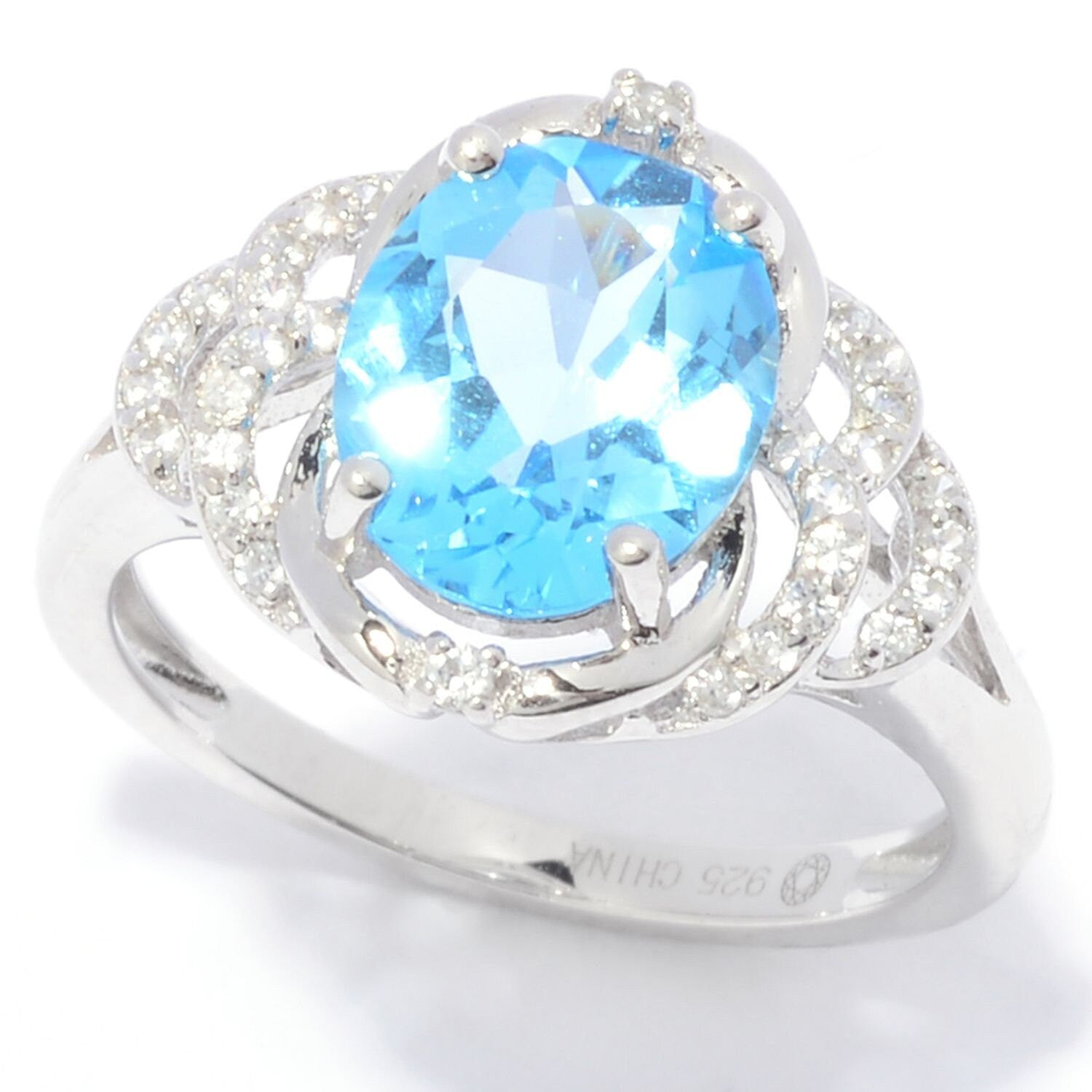 925 Sterling Silver Swiss Blue Topaz and White Zircon Gemstone Ring
