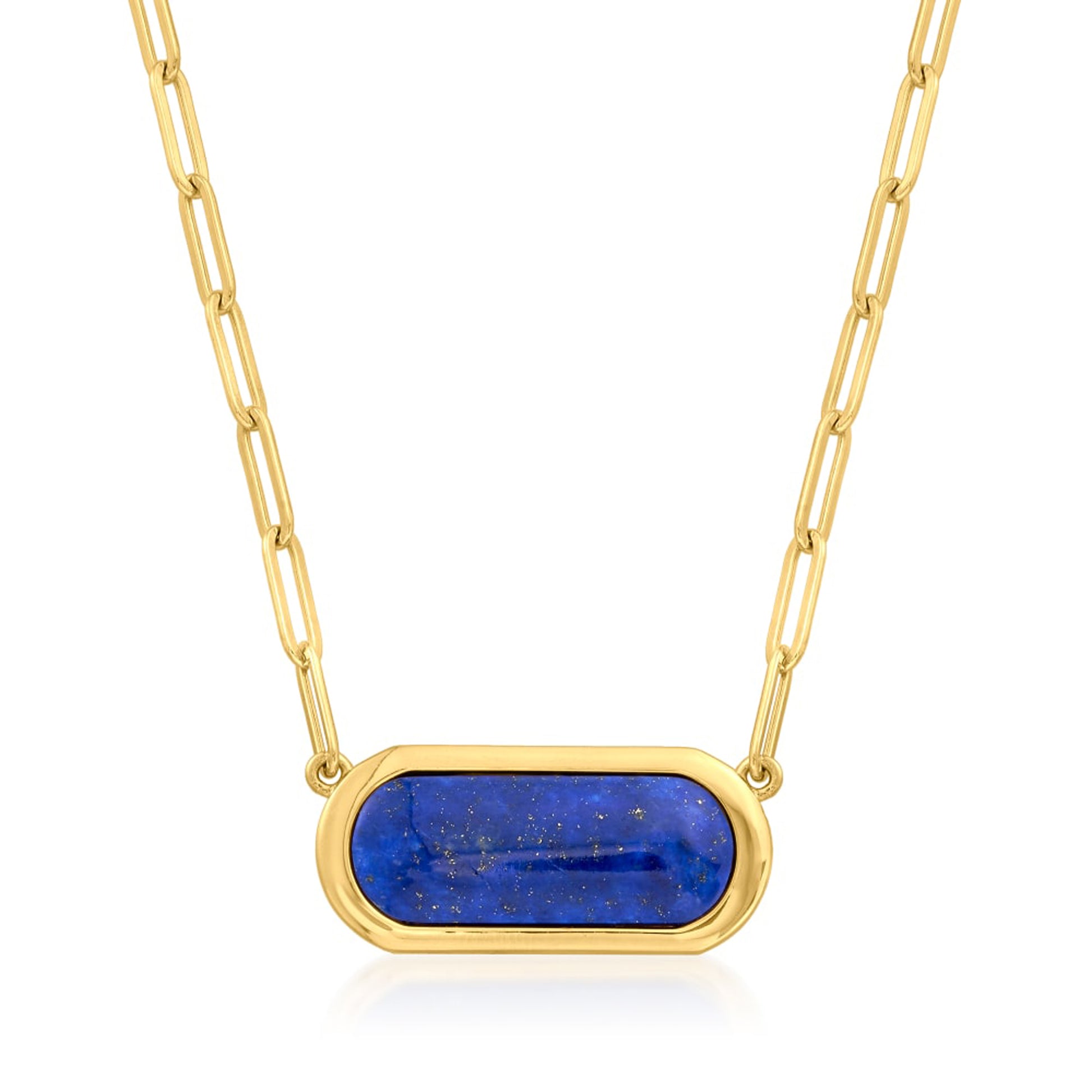 Enhance your jewelry collection with the elegant 18k Yellow Plating Over Sterling Silver Lapis Lazuli Necklace from Pinctore. This sophisticated necklace features a stunning lapis lazuli stone set in a beautifully crafted yellow-plated sterling silver setting.